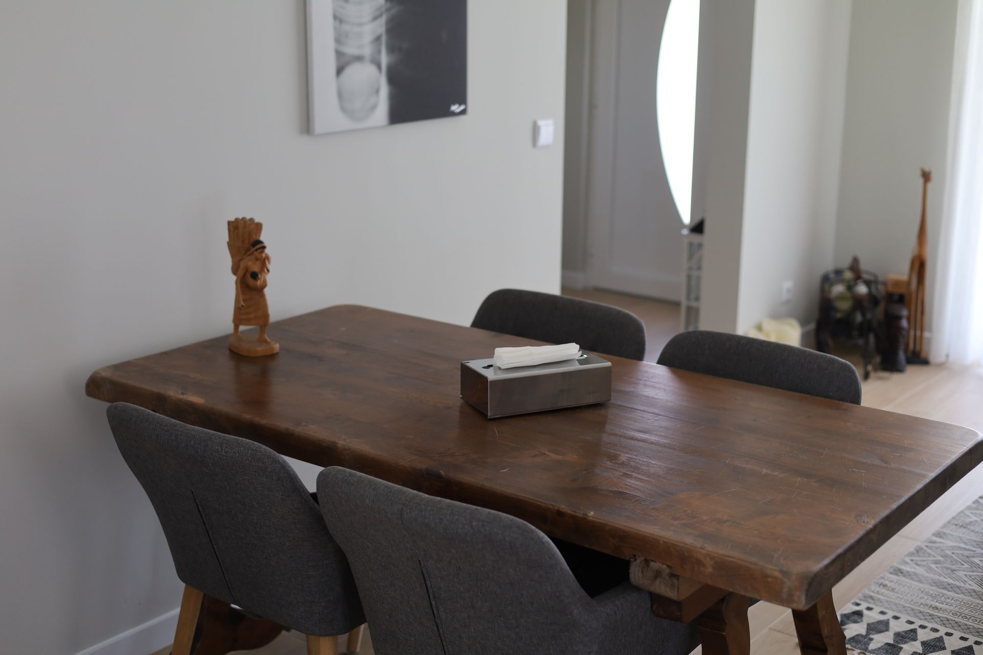 Casa independente com 65 m², 2 quartos, cozinha equipada, sala de jantar e estar, ar condicionado, Wi-Fi, área externa com com churrasqueira e parque de estacionamento privado.